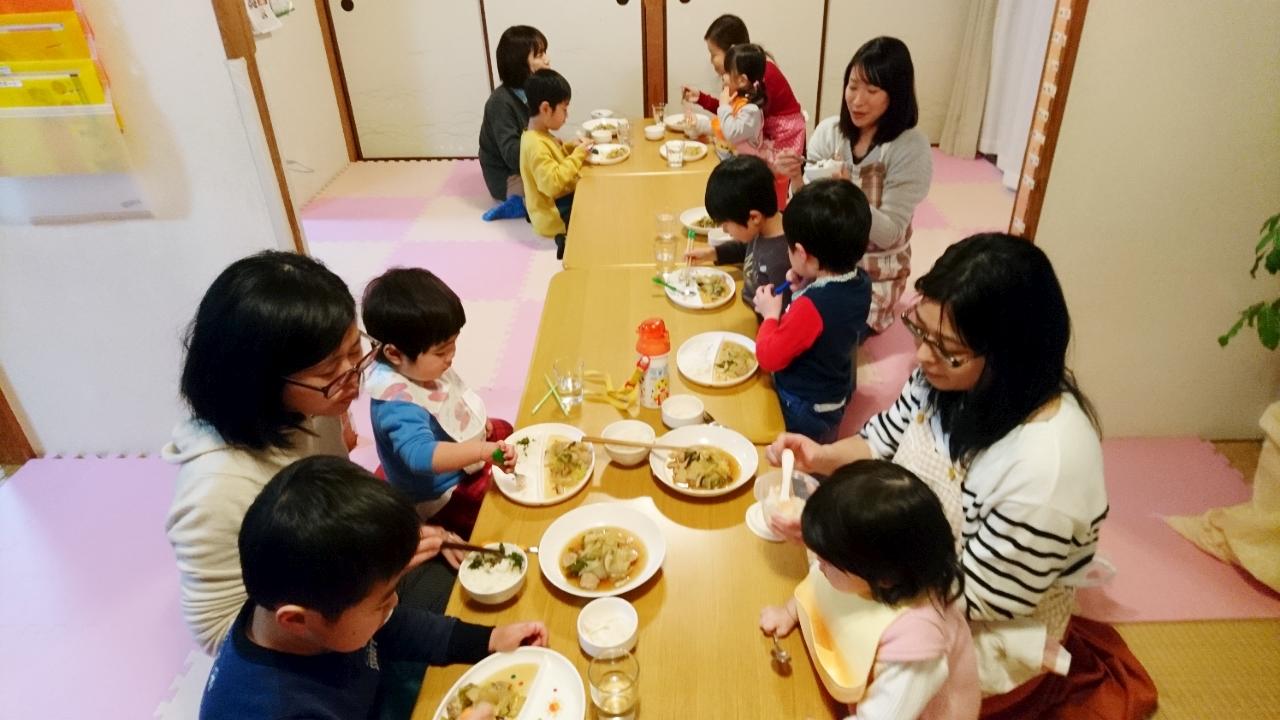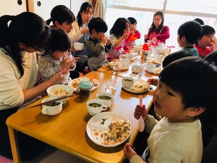 春休みということもあり、ベビーちゃんから中学生までの子ども達とママ、地域のおじさんも来てくれて、とっても賑やかな食卓となりました♡