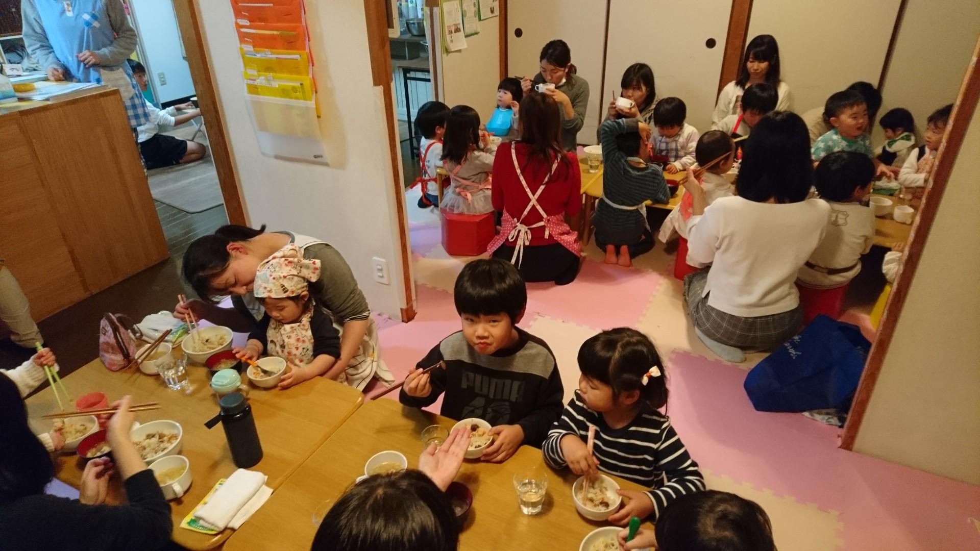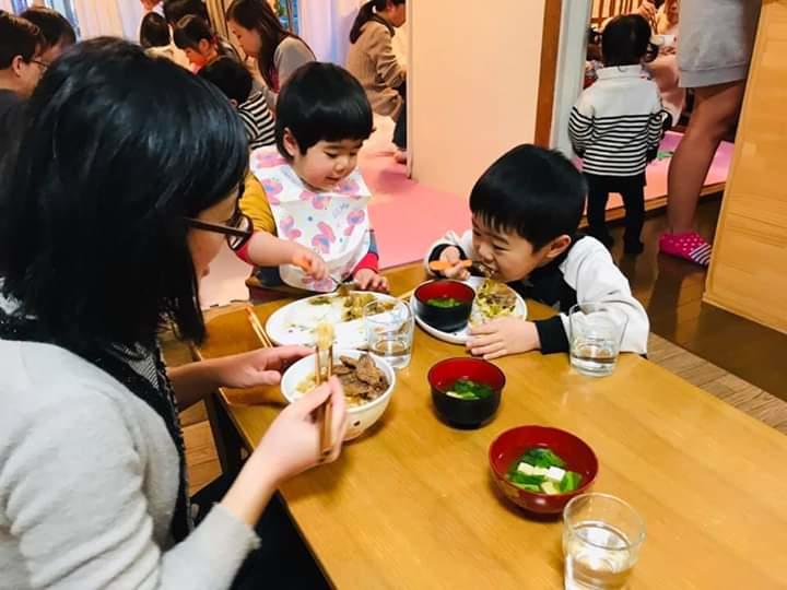 大勢で配膳するといただきますまでかなり待ち遠しいですが、みんなちゃんといただきますまで待ってくれるようになりました。