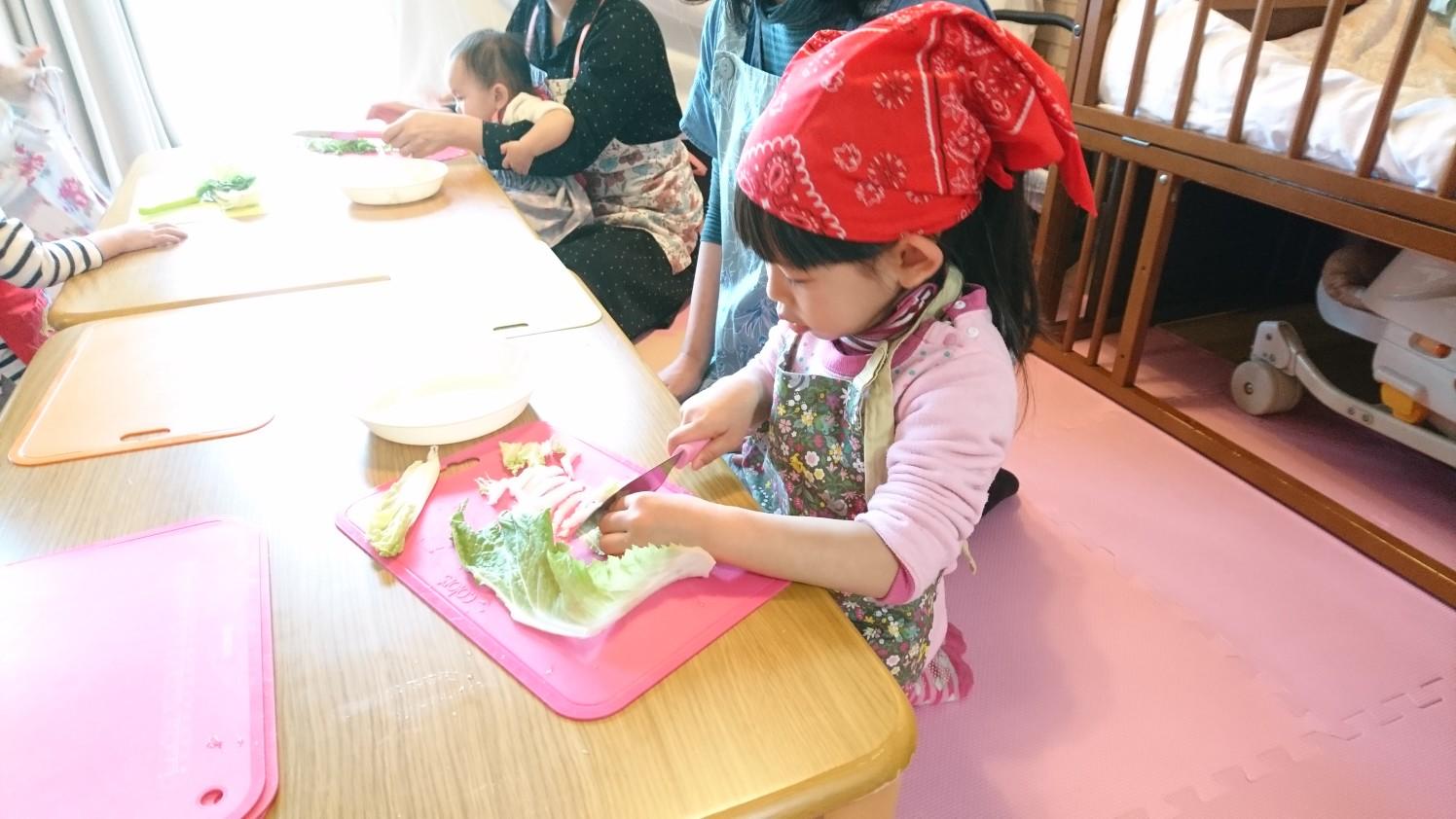 水菜や白菜など、たくさん切るものがありましたが、大人数で野菜を切ってくれたので、あっという間に料理の下準備もできあがりました。