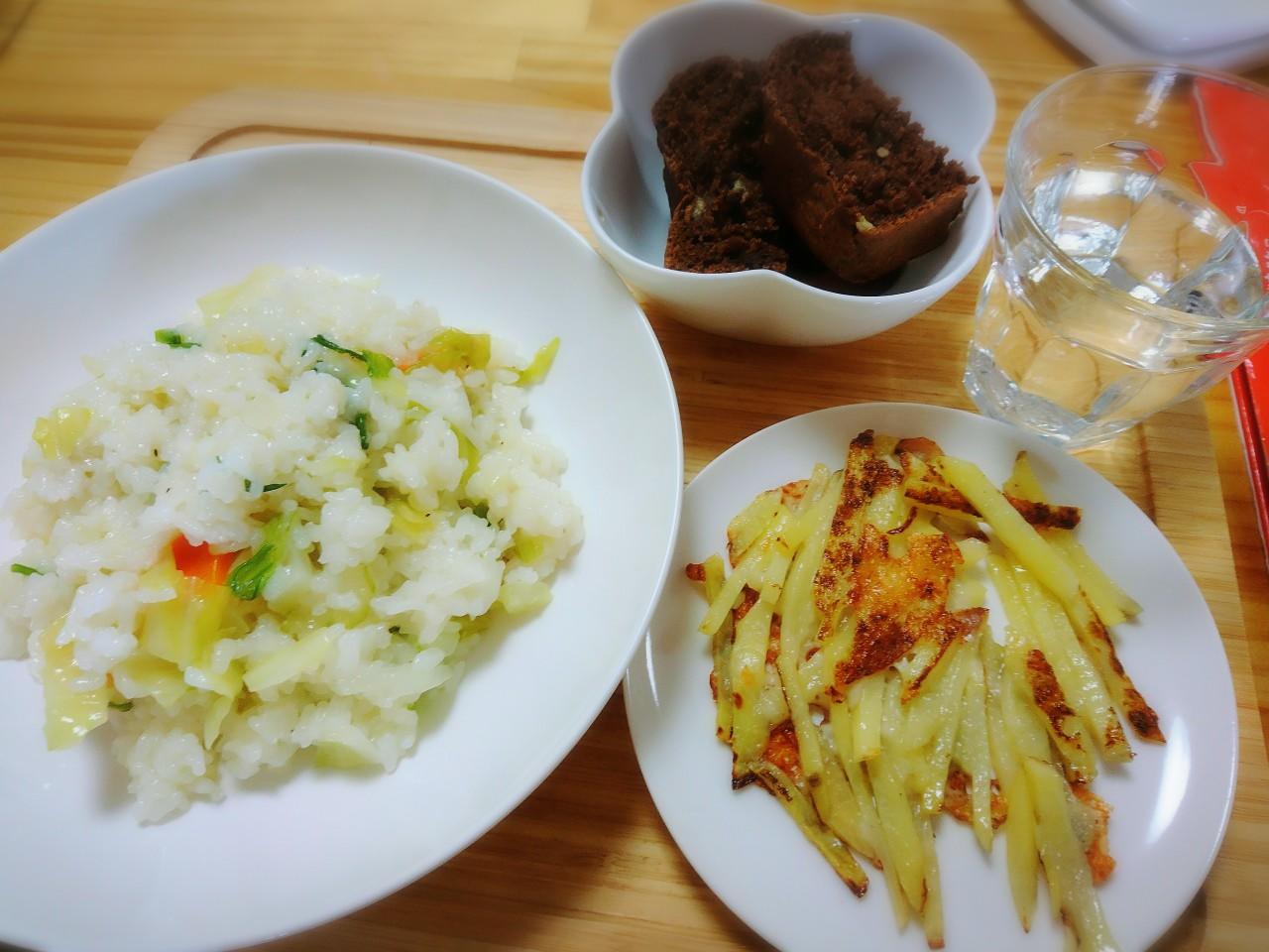 5月26日の0.1.2.3まめの木食堂のメニューは、たっぷり野菜のリゾット、ポテトガレット、バナナ豆乳ブラウニー。