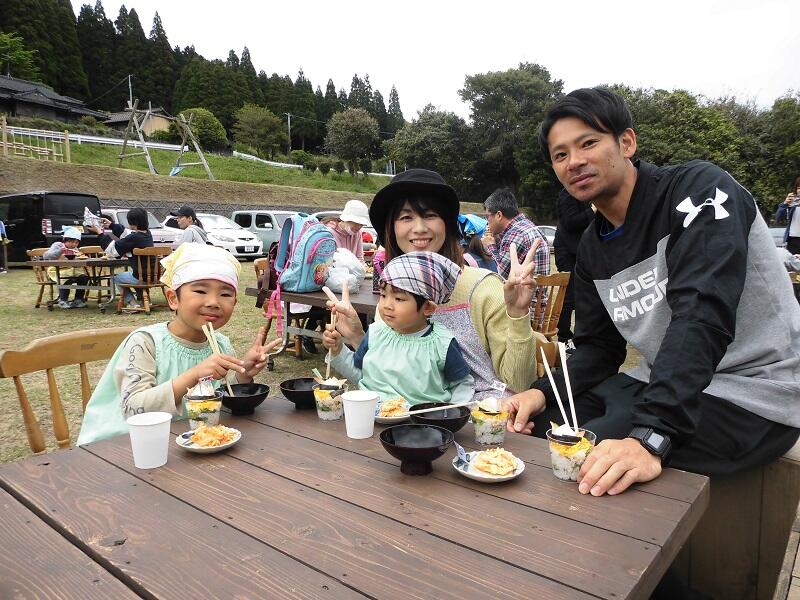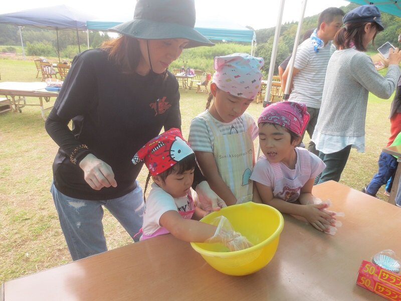 10月13日(日)、4回目となる「絵本の野菜が飛び出した!親子de野菜収穫&青空クッキング」を行いました。今回の季節の野菜は「さつまいも」。鹿児島の特産品さつまいもですが、どこからやって来たのか、なぜさつまいもという名前になったのかというお話やさつまいもを食べて出るおならについて等、楽しいお話の絵本の読み聞かせから始まりました。さつまいも収穫では、大きなさつまいもを親子で一緒に収穫しました。クッキングでは、さつまいもを使ってさつまいも茶巾を作りました。さつまいもを手で潰したり、こねたりと楽しくクッキングが出来ました。昼食のメニューは、さつまいもご飯、さつま汁、さつまいも茶巾と「さつまいもづくし」となりました。さつまいもがホクホクしてとても美味しく、参加したみなさん、何度もおかわりをして食べていました。