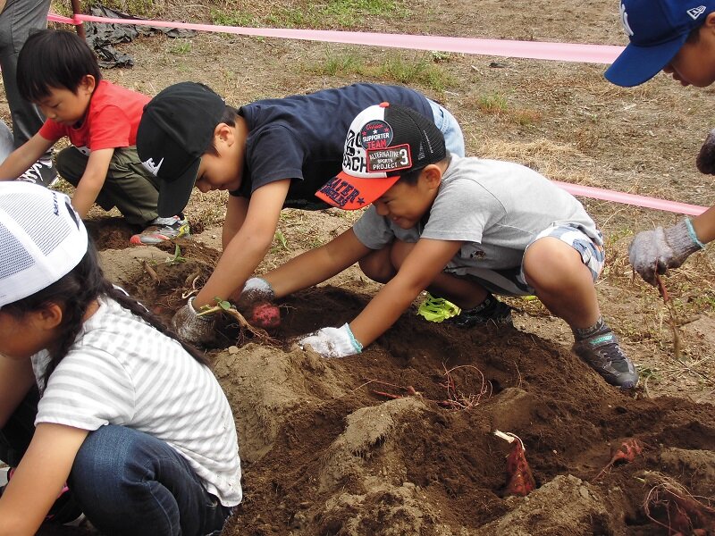 収穫したさつまいもが、とっても甘くてびっくりした。さつまいもご飯も作った茶巾も美味しかった。(小学4年生)