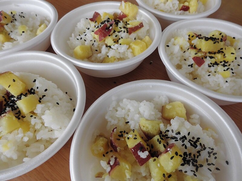 たくさんさつまいもが収穫出来た。お家で今度はお母さんにさつまいもご飯を作ってもらう。(小学3年生)