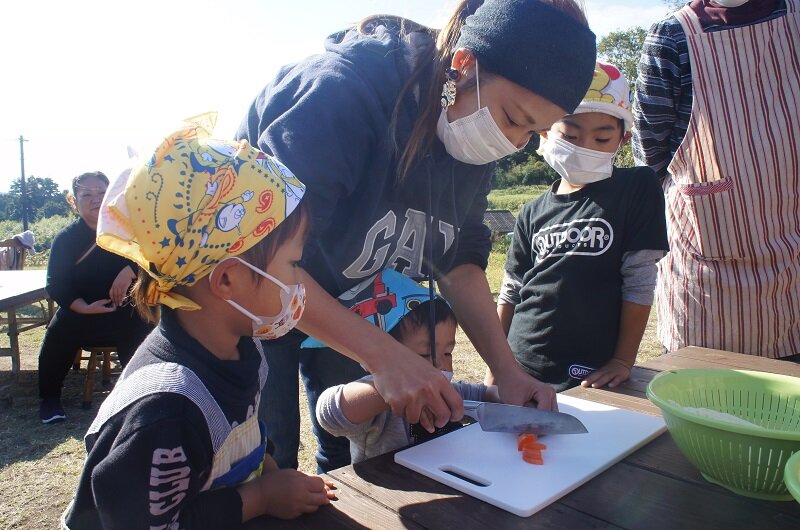 年間5回シリーズで行ってきた「絵本の野菜が飛び出した!親子de野菜収穫&青空クッキング」は、今回で最後となりました。1回目から全部参加されたご家族もいらっしゃいました。スーパーに並んでいる野菜が、実際に畑ではどんな姿なのか、絵本で興味を持ってもらい、実際に畑で収穫して、親子でクッキングをして食べるという一連の流れを体験しました。自然の中で季節の旬の野菜を実際に収穫する体験は、とても大事だと思います。体験を通して、野菜やクッキングに少しでも興味を持ってくれる子どもたちが増えたことは嬉しいです。
