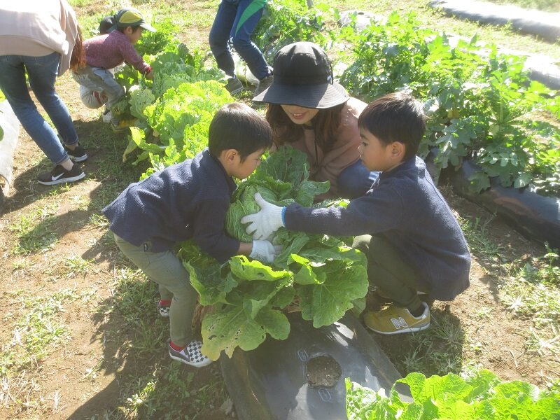 白菜が大きくて、すぐに抜けなかった。お母さんに手伝ってもらって抜いた。楽しかった。(年長さん)