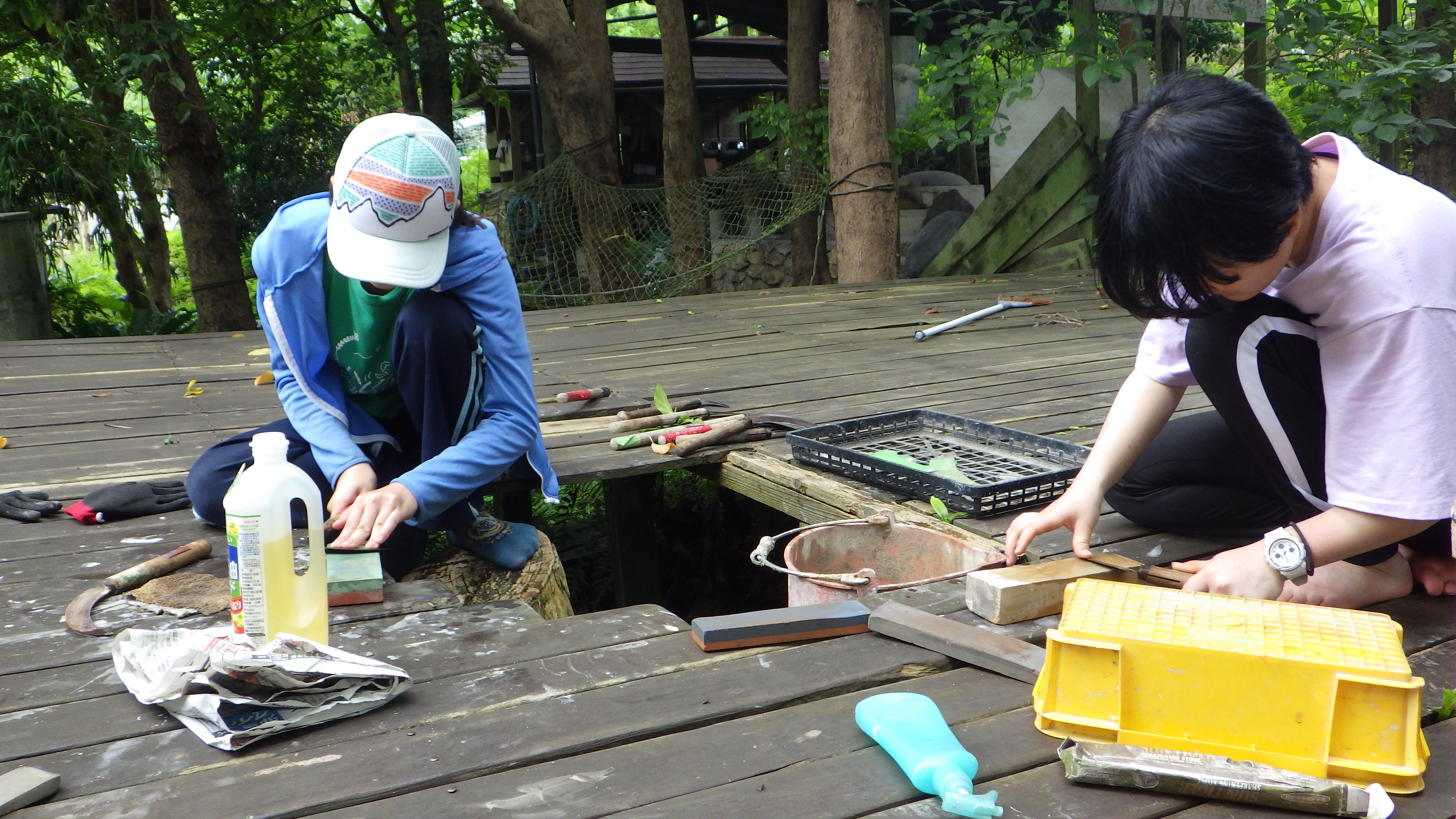 校外活動「山がんまり」の講師からある生徒が研ぎ方を教わって、