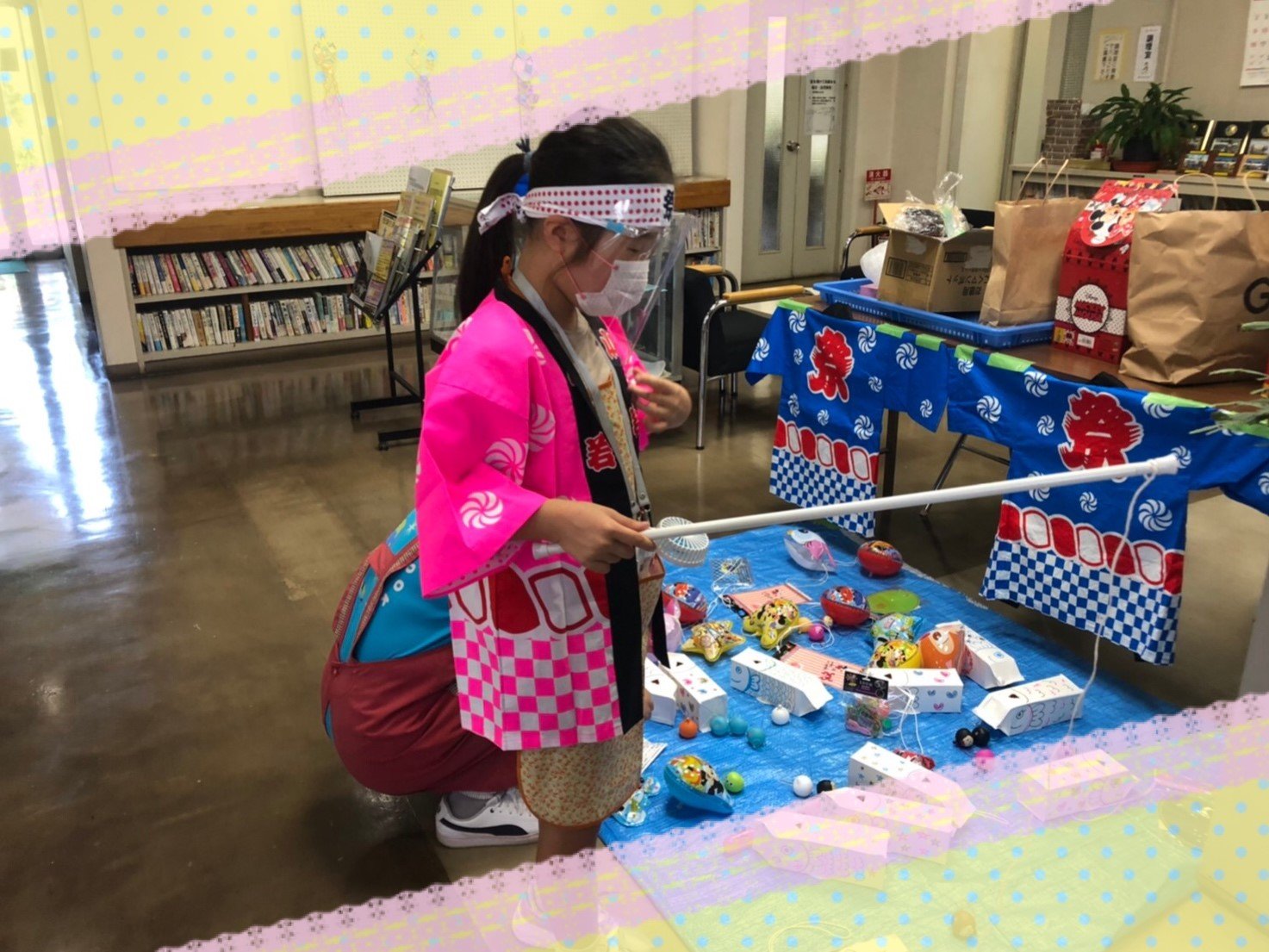 ☆ゲームコーナー、魚釣りゲーム、お面などの手作り品、景品バルーンのおもちゃ