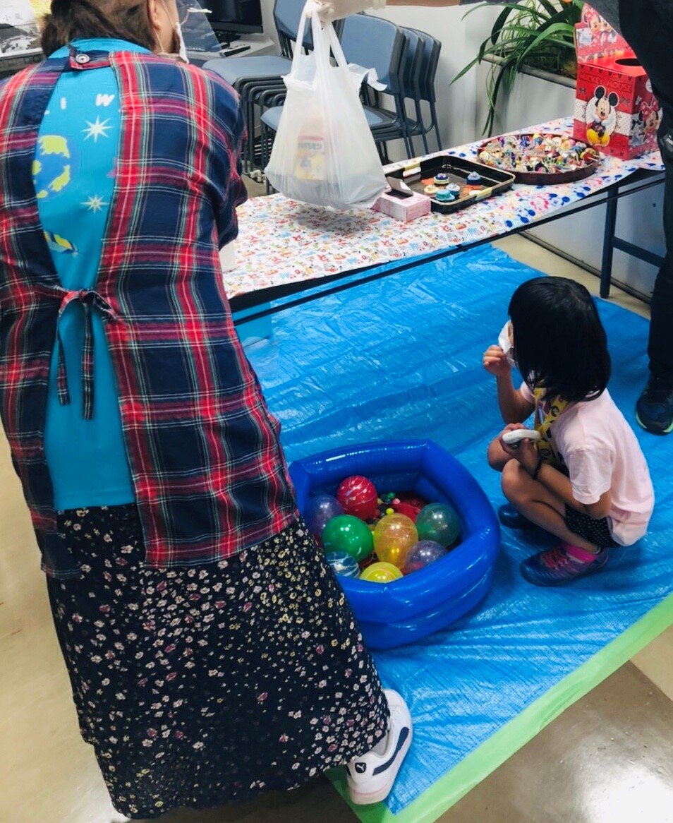子どもたちも我慢をいっぱいしていたので、ヨーヨー釣りやクジをしてお祭りの気分を味わってもらうため、ボランティアスタッフさんと手作りのお土産を作りました。