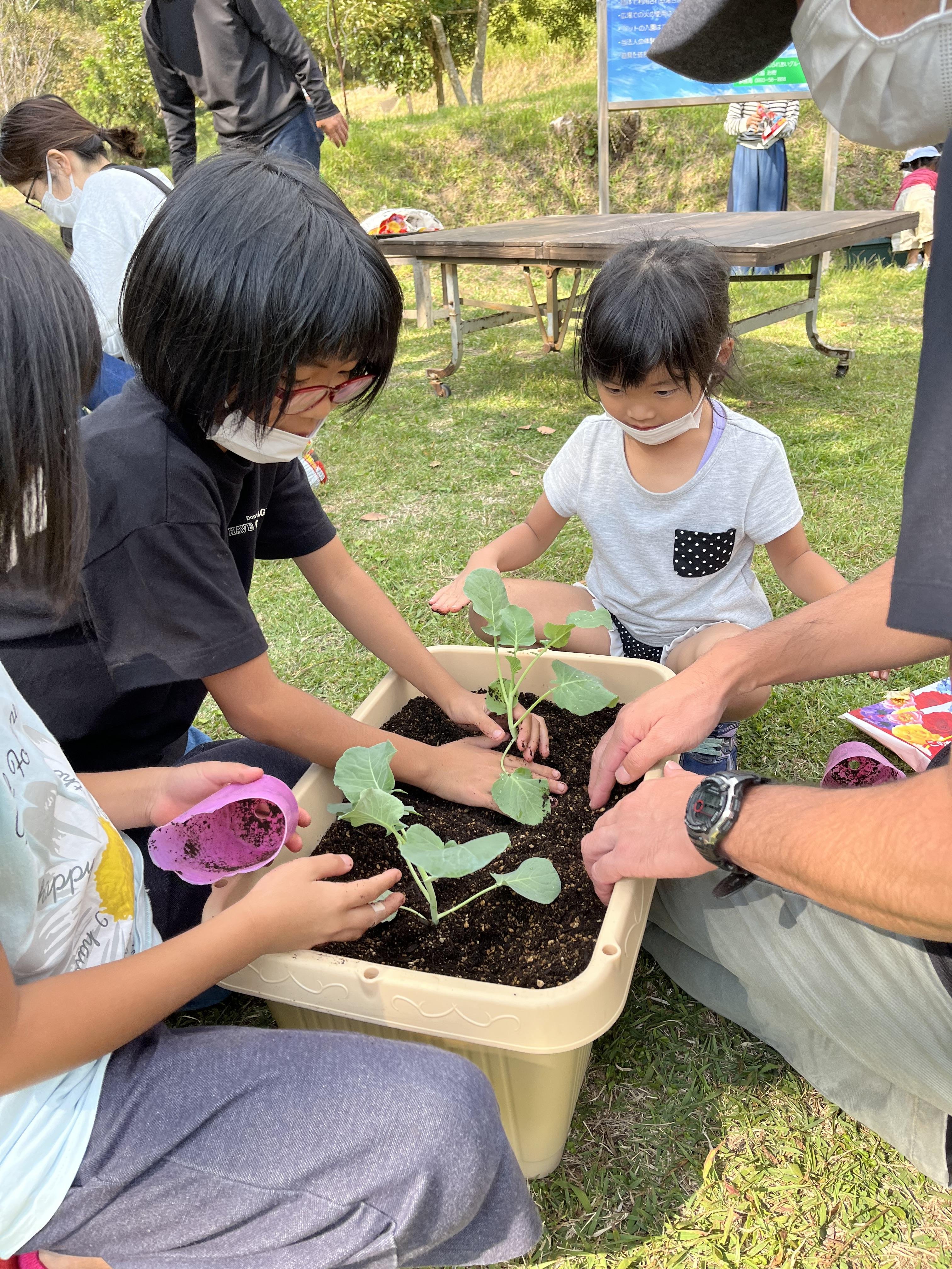 最後は、冬野菜の植え付けをしました。今回植えた冬野菜は、スティックセニョールです。一冬で何度も収穫できるそうです。プランターと畑に植え付けました。また、前回の計画の際に植える予定だったじゃがいもをスタッフで植え付けていたものを各家庭に持ち帰ってもらいました。すくすく生長する野菜を家族で育てて収穫する楽しみが出来ました。