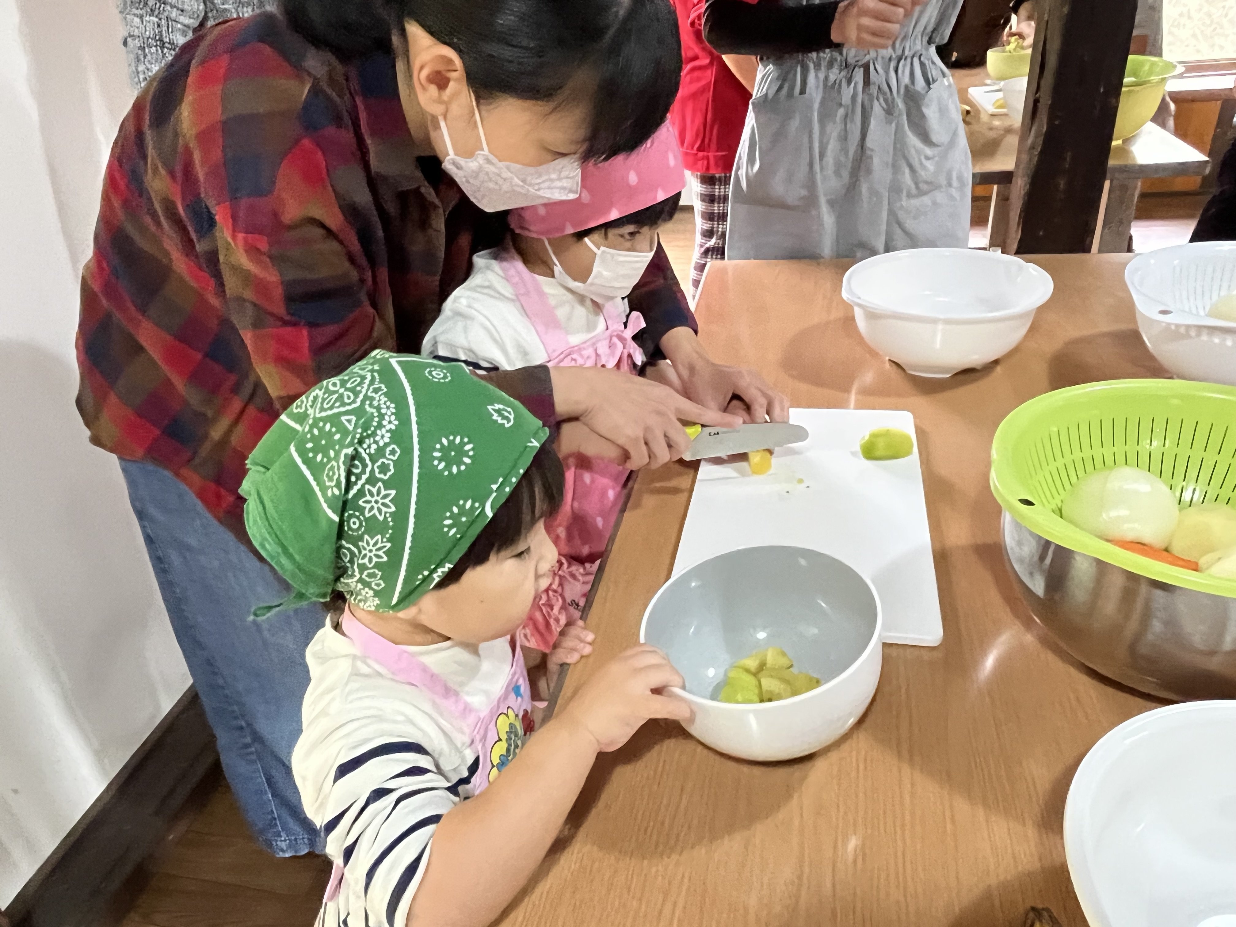 10月30日(日)、「親子で学ぼう!畑のキッチン!」の2回目を行いました。はじめの計画では、8月に予定していましたが、当日大雨警報が出て延期となり、9月は大型の台風14号が接近して延期となり、3度目にしてようやくの実施となりました。体験当日は、多くの親子に参加して頂きました。