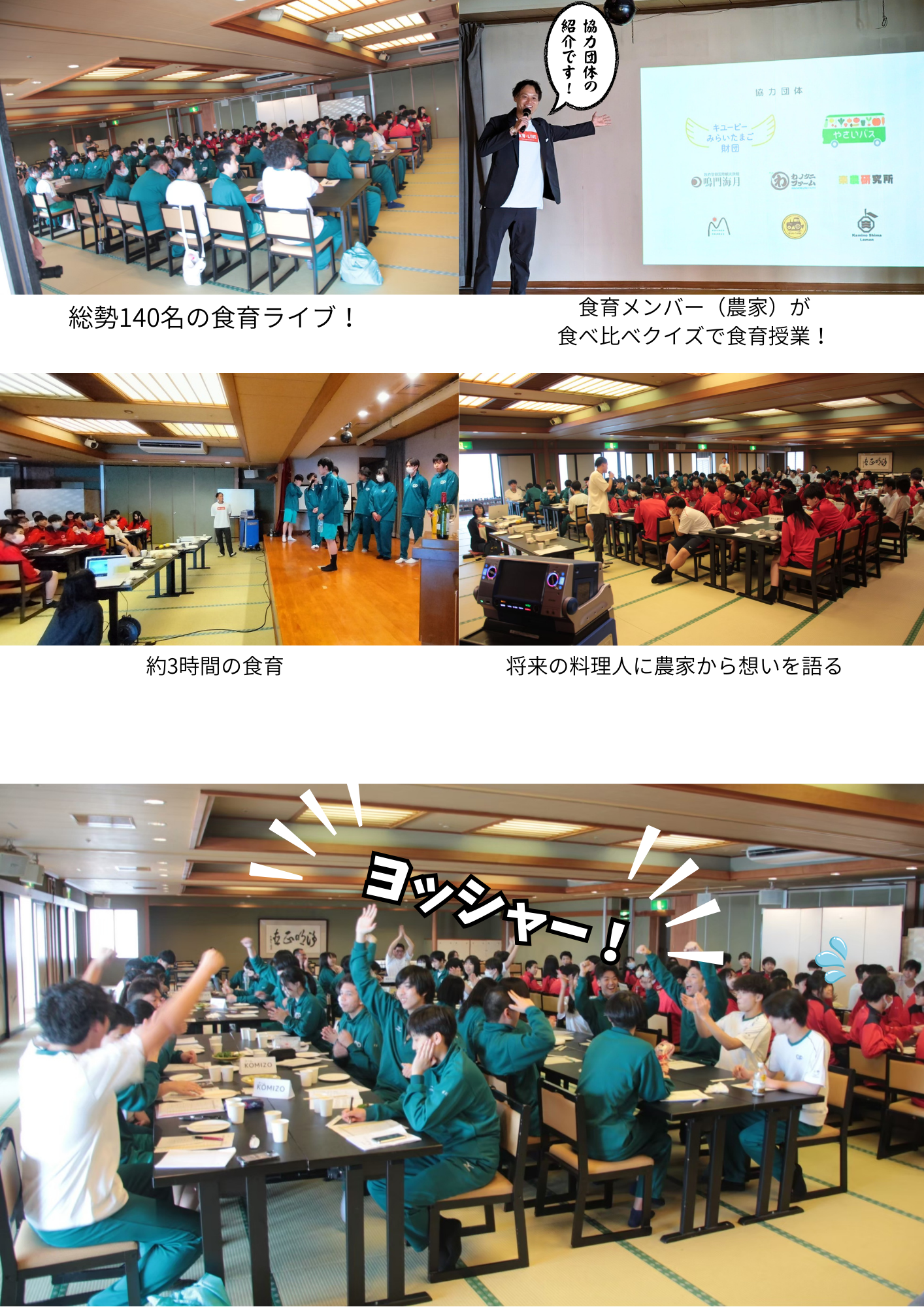 子どもの食育は、将来の健康と幸福の礎を築く重要な教育です。健康的な食事習慣は、成長期の子供たちにとって特に必要で、体と心の発育に良い影響を与えます。学校、地域農家全体が連携し、子供たちに食育を提供することで子供達が健康的な選択を自らの意思で行えるようになります。また、給食の時間を楽しみながら農業や野菜に対しての知識を深める事により、食べることの喜びや食材の大切さを理解できる子どもの育成に取り組めます。『食育ライブ』は給食時間にモニターで畑と農家さんを繋ぎより食=生産者の意味を伝える授業を行っております!