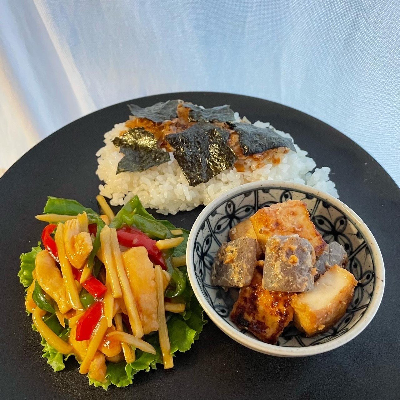 6/19水曜日のメニューは、青椒肉絲、厚揚げとコンニャクの味噌炒め、おやつは人参スコーン、地域の方からじゃが芋とフルーツのご寄付があり、追加でジャーマンポテトとジャムも作りました。