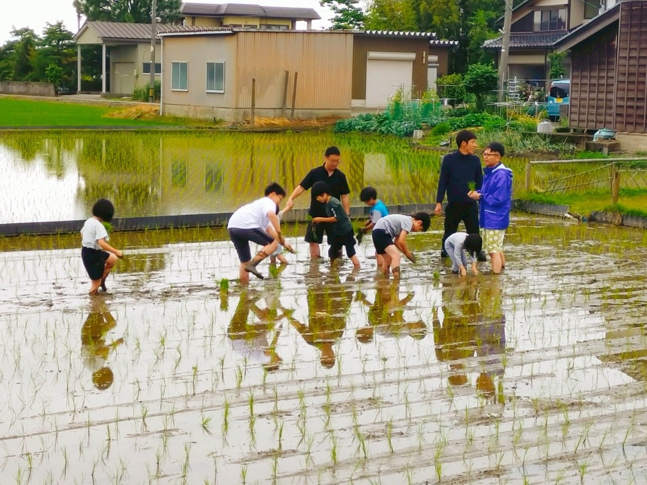 みんなで協力して、田んぼの一角が苗でいっぱいになったときは、ちょっとした達成感!