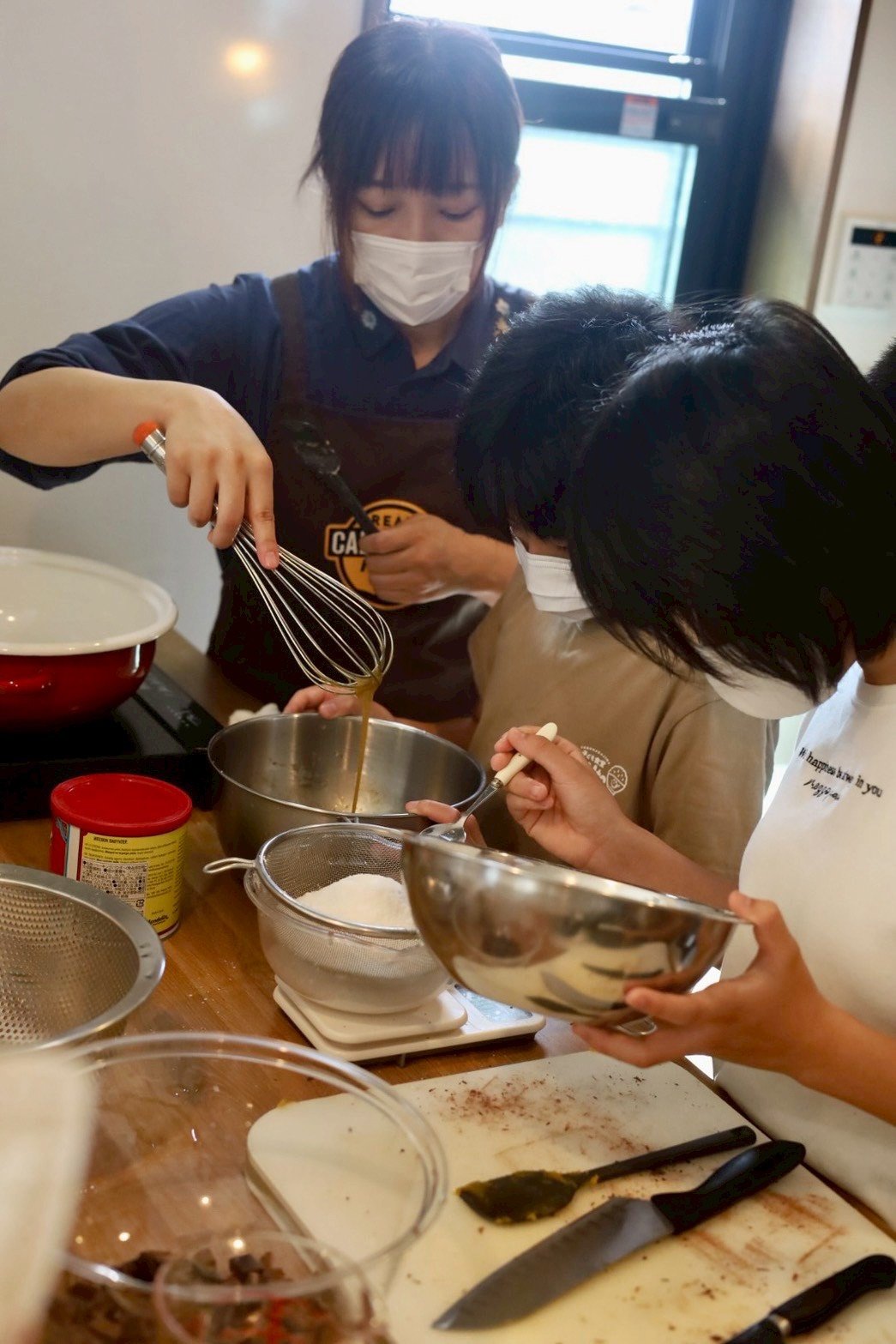 お菓子づくりの先生にも加わっていただき、限られた1時間半の中で、手際よく4品を完成させることができました。